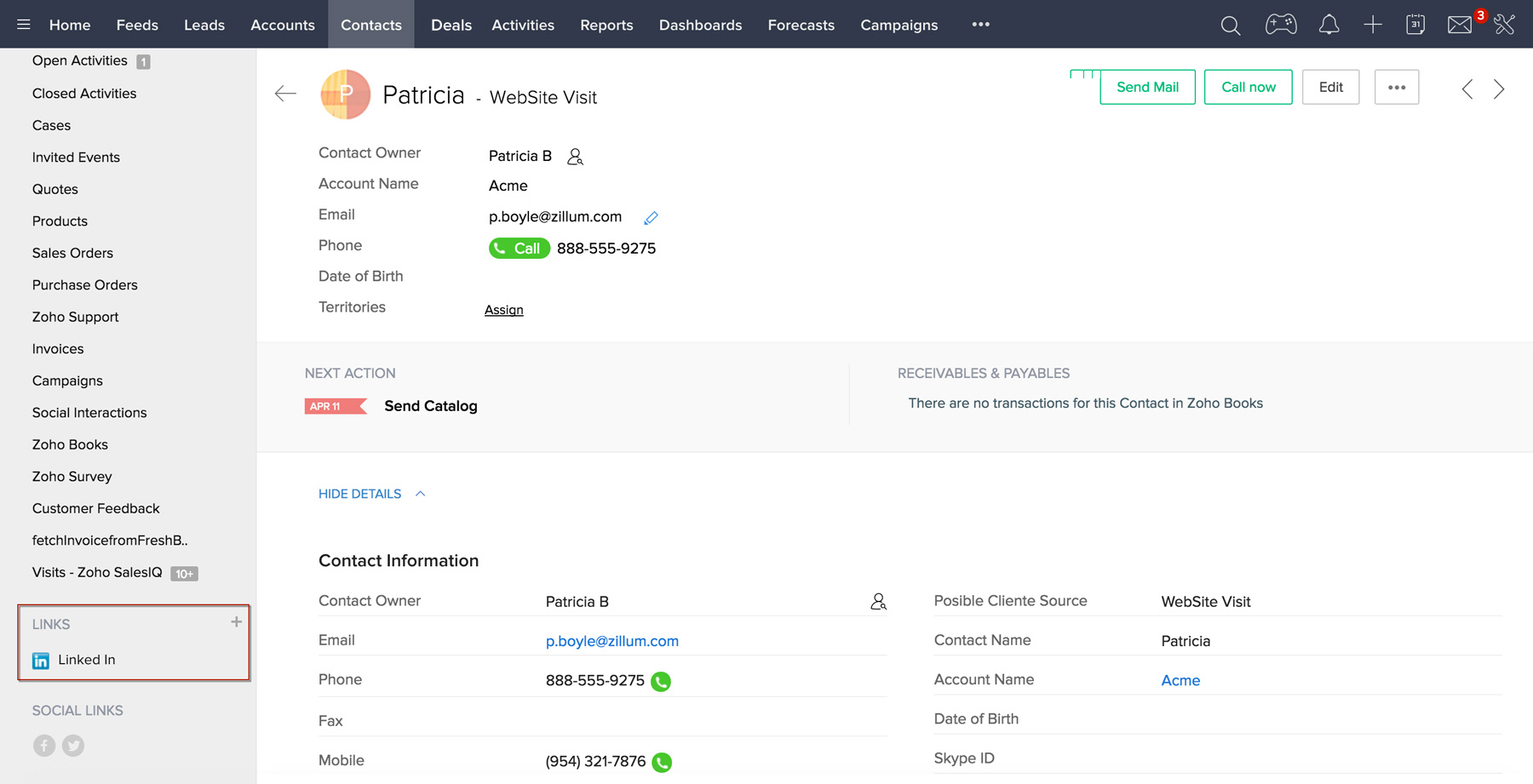 Zoho CRM for Google AdWords Yes Website Visitor Tracking Yes Marketing Campaigns Yes Mass Email 1000/day Custom Email Templates Unlimited Email Optout Yes ... Return Doc